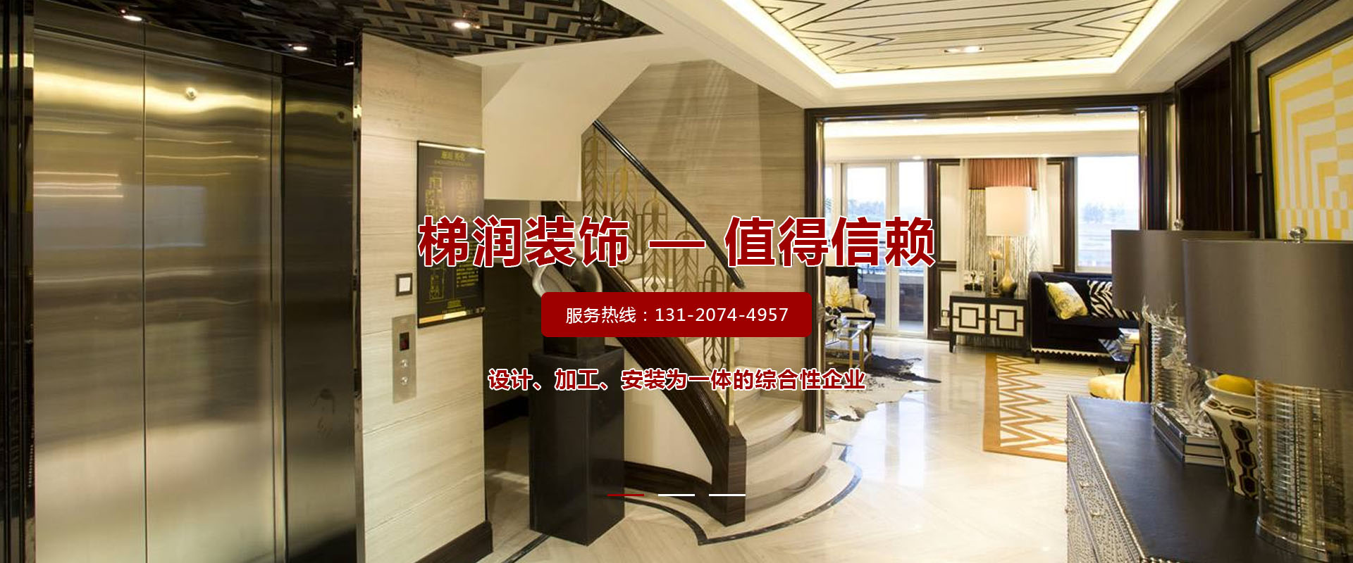 電梯裝潢包括:高檔轎廂裝潢、觀光梯,別墅梯及自動(dòng)扶梯等裝潢,電梯轎廂裝飾吊頂加工、各類扶手加工、各種大理石及PVC地面裝飾,廳轎門裝飾和大小門套及前壁裝飾等。